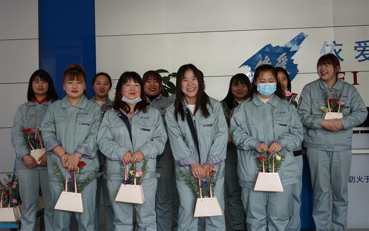 活動(dòng)當天上午,各部門(mén)女員工代表前往A12廠(chǎng)房一樓大廳,領(lǐng)取了婦女節的慰問(wèn)品和鮮花。并合影留念。